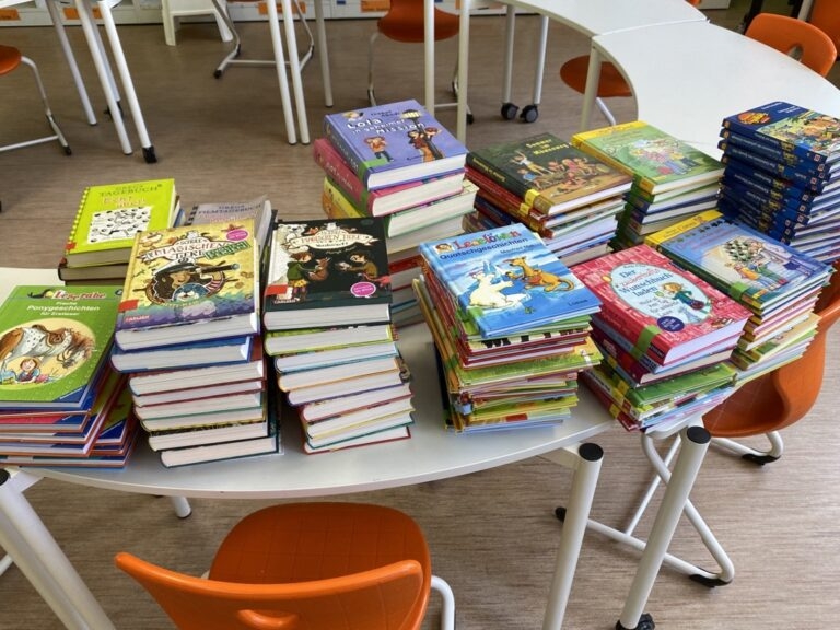 Zwischen der Stadtbücherei in direkter Nähe zur Schule findet eine enge Kooperation statt. Alle Schüler(innen) erwerben einen Leseausweis, der zur Bücherausleihe berechtigt. Im Laufe des Schuljahres besuchen die Klassen Lesungen in den Räumen der Bücherei.